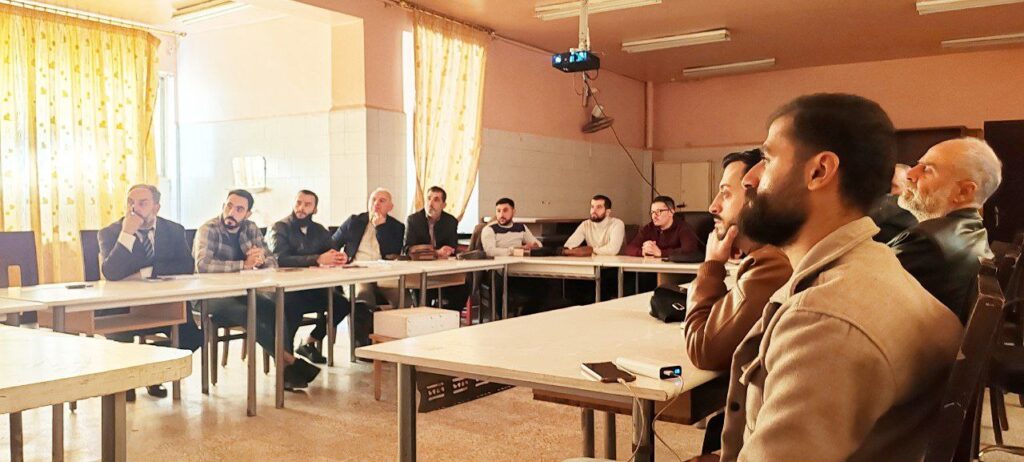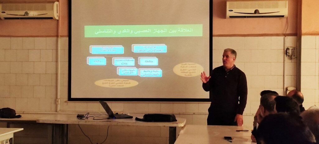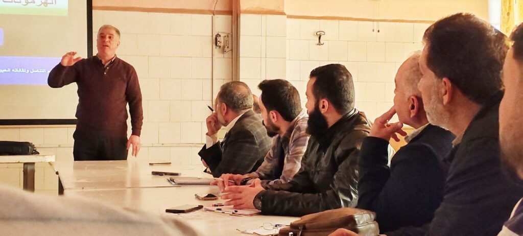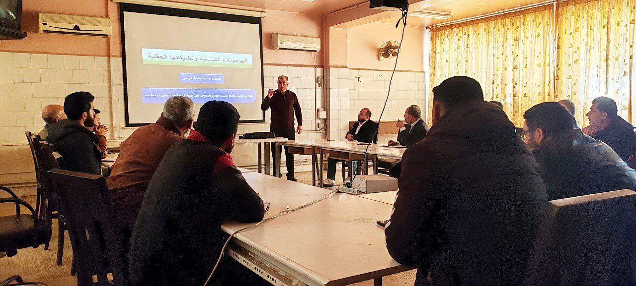 اليوم الأول من ورشة العمل التدريبية التي أقامتها كلية الطب البيطري بالتعاون مع نقابة الأطباء البيطريين والمؤسسة العامة للمباقر في محافظة حماة