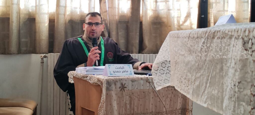 بحضور نائب رئيس جامعة حماة للشؤون الإدارية والطلابية، الأستاذ الدكتور “محمد عبدو فلفل”، نوقشت في كلية التربية رسالة الماجستير العلنية الموسومة بعنوان: «تحليل محتوى كتاب العربية لغتي للصف السادس الأساسي في ضوء نظرية الذكاءات المتعددة»، التي أعدّها طالب الدراسات العليا “ماهر عوض حمدو”، وذلك استكمالاً لمتطلبات نيل درجة الماجستير في اختصاص تربية الطفل.