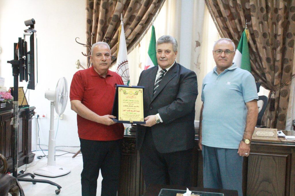 وخلال اللقاء، قدّم الدكتور “عصام المغير” درع شكر وعرفان لرئيس جامعة حماة، تقديراً لجهوده المستمرة ومتابعته الحثيثة لإنجاح المعسكر، وما له من أثر كبير في تحقيق أهدافه ورفع مستوى أدائه.
