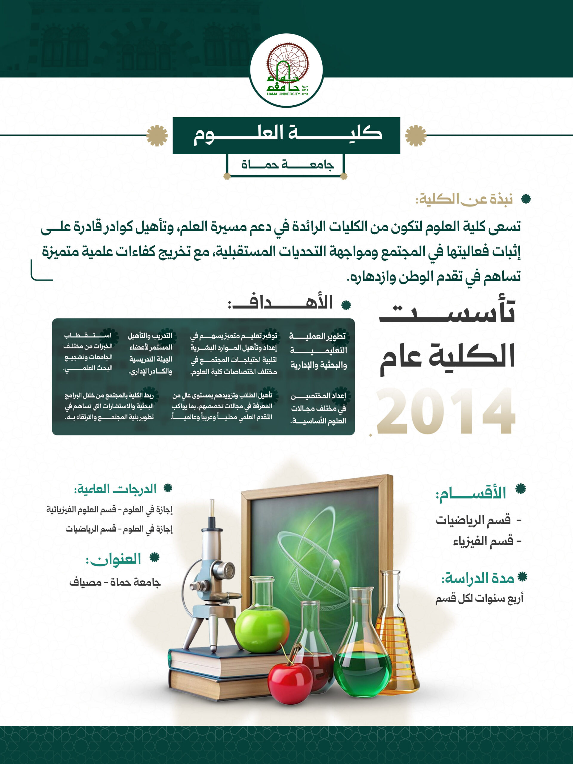 في كلية العلوم بجامعة حماة، يجتمع عُمق الرياضيات وسِحر الفيزياء لصياغة عقول تبحث، تُحلّل، وتبتكر.