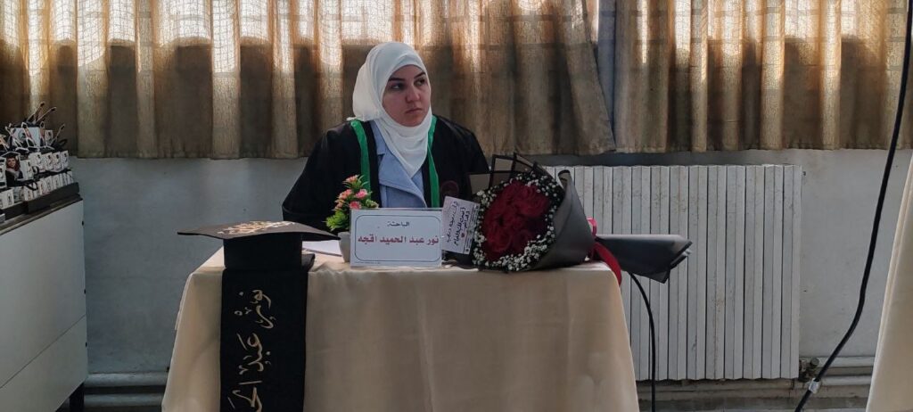 وبعد المناقشة منحت لجنة الحكم الطالبة درجة الماجستير بتقدير جيد جداً وبعلامة 83.93.
