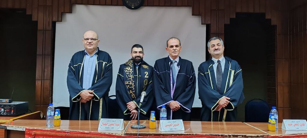وبعد المناقشة مع لجنة الحكم، مُنِحَ الباحث درجة الماجستير بتقدير جيد جداً وعلامة 76.47.