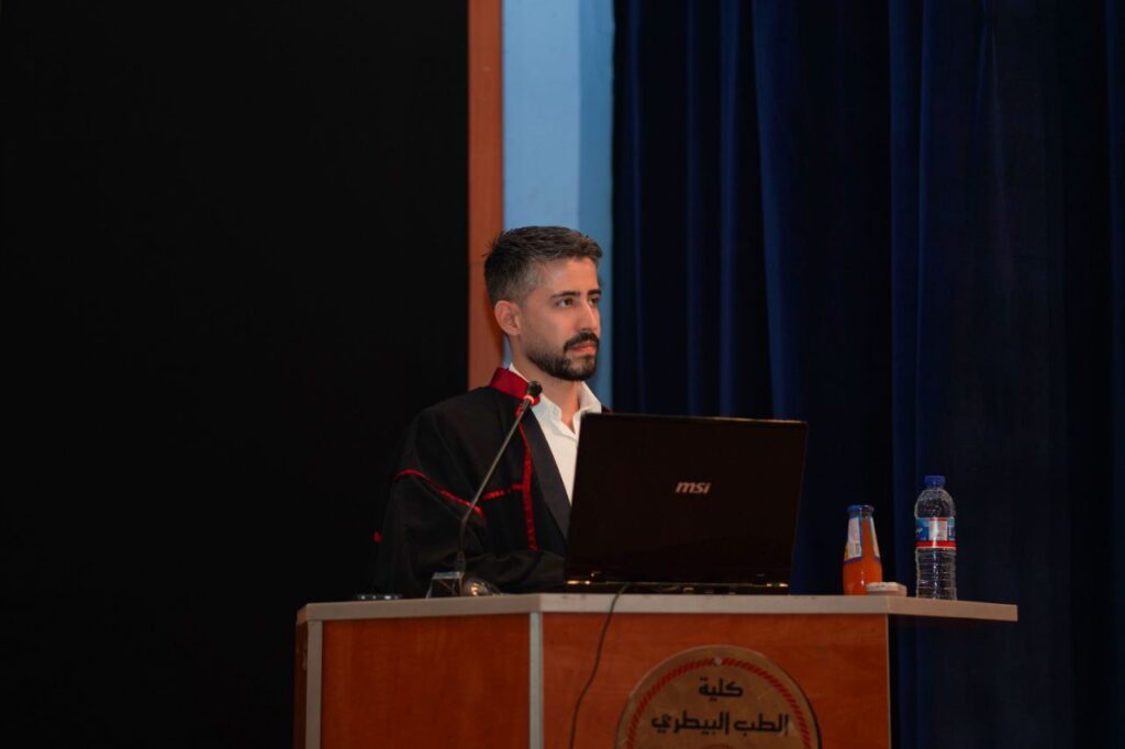 مناقشة علنية لرسالة ماجستير في كلية الطب البيطري -اختصاص علم الحيوان- في جامعة حماة للباحث “ضياء الدين شعبان” الموسومة بعنوان “تأثير الأرجنين في مستوى هرمون التستوستيرون والتغيرات النسيجية للخصية عند ديوك أمّات اللحم”.