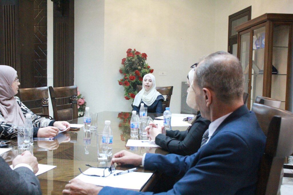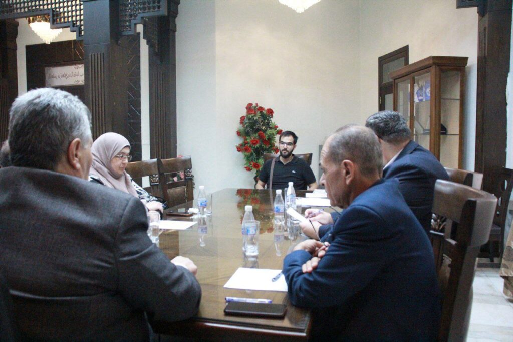 جانب من مقابلات فحص أهلية التدريس واللياقة الصحية التي نظمتها جامعة حماة للخريجين الأوائل للعام الدراسي 2023/2024 المرشحين للتعيين بصفة معيد، وذلك أمام لجنة مختصة برئاسة الدكتور “عبد الكريم قلب اللوز” رئيس جامعة حماة، والدكتور “حسين العيسى” نائب رئيس الجامعة للشؤون العلمية، والدكتور “حيان العلواني” نقيب المعلمين، والدكتورة “مها السلوم” عميدة المعهد العالي للغات، بحضور عمداء الكليات المعنية حسب تخصص كل كلية.