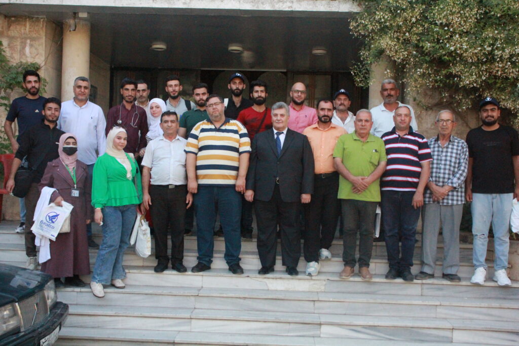 واستقبل رئيس جامعة حماة الأستاذ الدكتور “عبد الكريم قلب اللوز”، قائد المعسكر الإنتاجي لكلية الطب البيطري في جامعة الفرات الدكتور “عصام المغير”، إلى جانب طلبة كلية الطب البيطري المشاركين في المعسكر الإنتاجي.