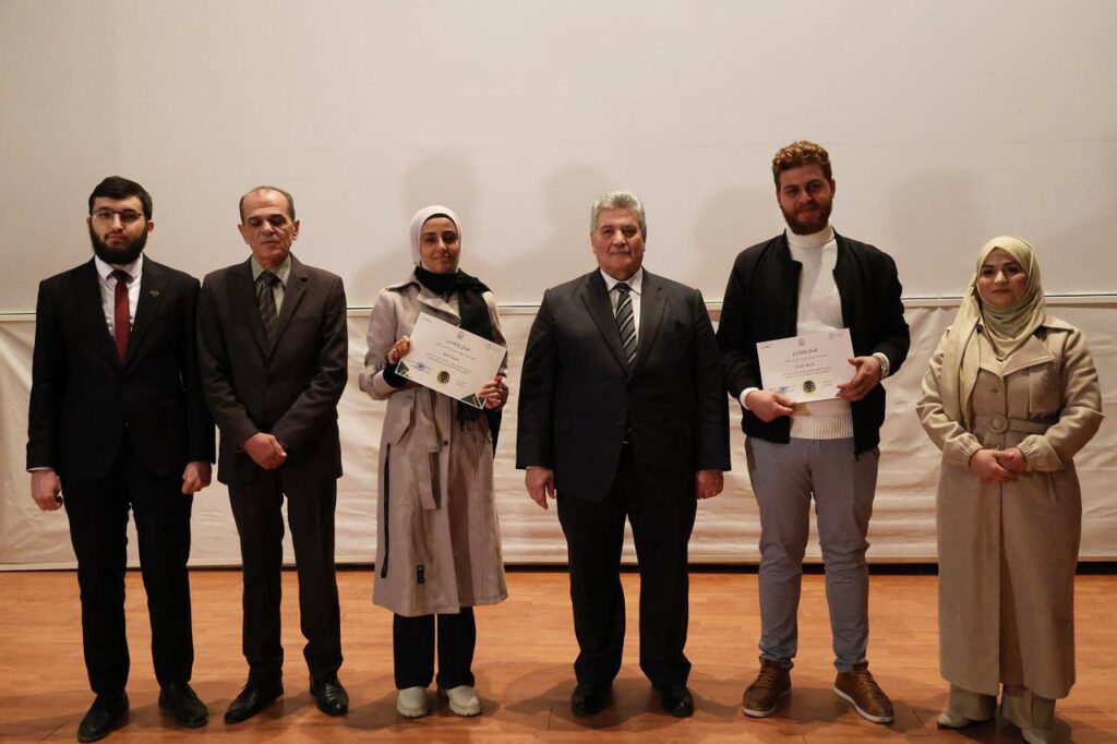 شهد الحفل حضور رئيس جامعة حماة الدكتور “عبد الكريم قلب اللوز”، ونائب رئيس الجامعة للشؤون العلمية الدكتور “حسين العيسى”، إلى جانب ممثل عن إدارة الشؤون السياسية، ومدير مديرية المعاهد التقانية، وعدد من عمداء الكليات ومديري المعاهد التقانية في الجامعة، مما أضفى على المناسبة طابعاً رسمياً واحتفائياً مميزاً.